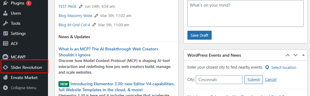 2. In your WordPress admin dashboard, navigate to Slider Revolution.